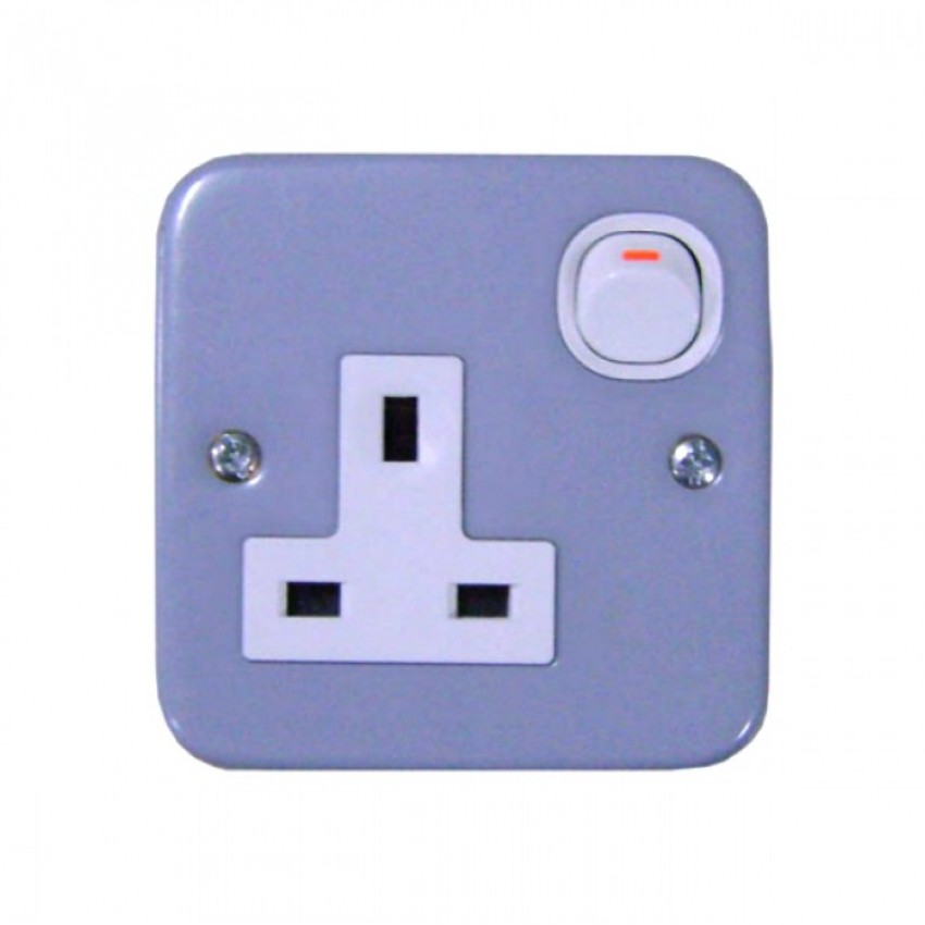 ESM15 - Bộ ổ cắm đơn 3 chấu 13A có công tắc, mặt kim loại