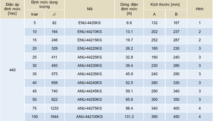 ■ Mã & Kích thước thiết bị: 440V 50Hz