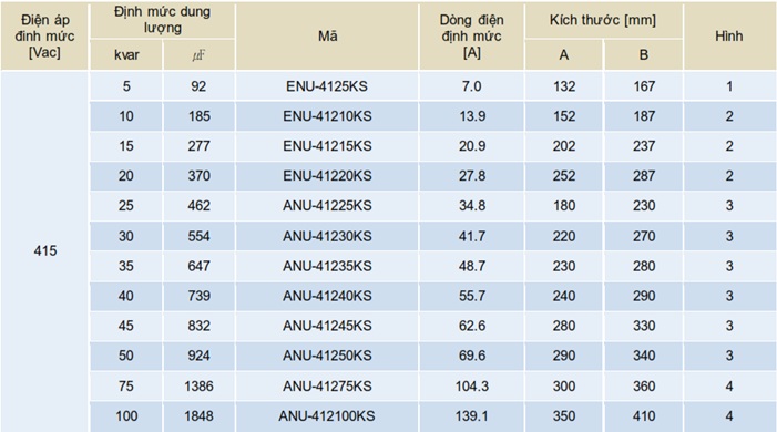 ■ Mã & Kích thước thiết bị: 415V 50Hz